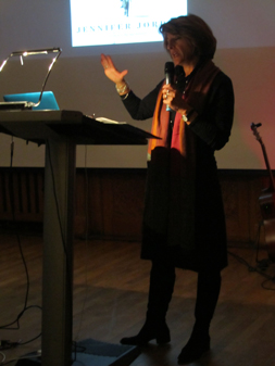 Giving "Last Man on the Mountain" presentation at a corporate annual meeting, ZurichThroughout her professional life, Jennifer has lived center stage, surrounded by microphones and cameras. The list of her experience in the public eye includes radio talk show host and reporter, television news magazine host and contributor, director of Harvard's renowned John F. Kennedy, Jr. Forum where she welcomed an A-list of world speakers, and finally author and filmmaker.